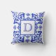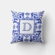 Handmade Blue White Custom Monogram Throw Pillow