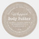 Modern, rustic and simple organic homemade whipped body butter label with the text handmade by, and your business website in white modern typography and elegant calligraphy on a kraft paper background. Simply add your name, business website, the product name, the ingredients and the weight to the label and you're ready to sell your handmade organic beauty products! Exclusively designed for your small business by Happy Dolphin Studio. If you need any help or matching products, please contact us at happydolphinstudio@outlook.com.