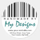 Personalized Handmade By Label Stickers with a black and white barcode design. Personalize with your own address, website address and name/business name.