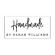 Rubber stamp featuring the text "Handmade" in a modern handwritten style script font and your name below.