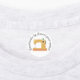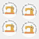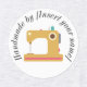 Iron on label features "Handmade by [Insert Your Name Here]" customizable text in modern script font with simple colour sewing machine graphic