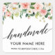 Handmade Calligraphy Pink White Floral Small Square Sticker