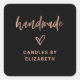 These stylish and chic black small business packaging labels feature faux rose gold casual, modern script typography that says "handmade", along with an elegant matching hand-drawn heart and a place to add your company name. A look that is both stylish and professional, and perfect for any type of product, such as candles, apparel, crafts, and ceramics.