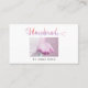 The front of this elegant modern card has a artistic girly chic feminine script typography font spelling out the word HANDMADE. The colors are pastel gradients ombre pink purple and violet.