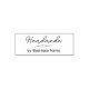 This self-inking stamp template has a cursive script that says Handmade at the top. A heart is in the middle. Additional text for your business name is at the bottom. All of the text can be edited or deleted.