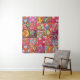 Handmade patchwork quilt with floral pattern as background. Retro style handmade blanket on market in Suzdal, Russia