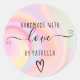 Handmade love typography pastel rainbow marble with pink,yellow, green and teal unicorn holographic marbling effect.