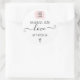 Black and white Handmade with love with elegant typography and editable heart. Add your logo on a pink watercolor brushstroke.