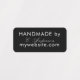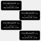 A label for your handmade products or art. Personalize and add your name and website address. Black background, white text. You can change the background colour and the text colour to match your brand. You can choose one colour per row, 4 rows.
