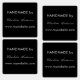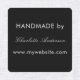 A label for your handmade products or art. Personalize and add your name and website address. Black background, white text. You can change the background colour and the text colour to match your brand. You can choose one colour per row, 4 rows.