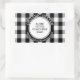 Rustic country, trendy black and white buffalo check product label stickers for branding- Classic country, black and white lumberjack plaid chequered pattern. Centre displays name of product displayed in white circle. Company name above in curved, modern lettering in matching white and bottom had custom business website address on the black circle border. Perfect for manly soaps for men, for branding your homey family business, country themes, rustic themes, and farmhouse product styles. Click Customize option to change text colours, size, and font styles. We have lots more soap product labels in our Zazzle.com/angela65* shop to mix and match for different soaps.