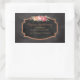 Elegant, but rustic, faux chalkboard product label stickers for branding your business- Vintage chalkboard look background. In the centre is another black chalkboard frame with popular, rose gold faux glitter edges and vintage style pink rose wreath adorning the top. Has company name in matching, rose gold colour script. Underneath is name of product and custom business website address. Note: All images are printed. Not actual glitter or chalkboard surface. Perfect for branding your family business, for country themes, and rustic product styles. Click Customize option to change text colours, size, and font styles.