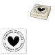 Rubber stamp featuring the text "Handmade with love" and your name or other custom text in a modern sans serif font surrounded by a round border. At the centre is a cute heart.