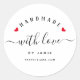Custom Handmade with Love gift tag sticker with a cute script calligraphy design, hand drawn little red hearts, and space for your custom name and website information. Perfect little add-on for your homemade jams, soaps, or knit sweaters to sell or give away for a holiday or valentines day!