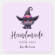 Handmade with Love Cute Black Cat in a Witch's Hat Square Sticker