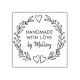 Handmade with love rubber stamp, personalized with your name or business name. This cute design has a doodle hand-drawn wreath with hearts and foliage. It is lettered with modern typography and handwritten brush script. A sweet country rustic style design for artisans of handmade gifts and retail products.