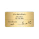 A faux gold looking background, black text. Personalize and add your name and return address. With the text: Handmade with love, by + a small heart.