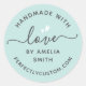 Handmade with love heart name URL light aqua blue Classic Round Sticker