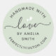 Handmade with love heart name URL light sage green Classic Round Sticker