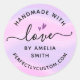 Handmade with love heart name URL pink purple Classic Round Sticker