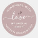 Handmade with love heart name URL rose taupe Classic Round Sticker