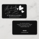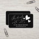 This simple, modern, and elegant business card is perfect for the home crafter, Etsy shop owner, or art fair creative. It features a handwritten signature script white font typography, "Handmade with Love," with three cute hearts, social media information, and a place for your business information on a plain black background. It's unique, professional, cute, trendy, contemporary, and stylish; the perfect design to impress your customers and market your business.