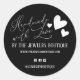 This simple, modern, and elegant business packaging sticker is perfect for the home crafter, Etsy shop owner, or art fair creative. It features a handwritten signature script white font typography, "Handmade with Love," with three cute hearts, your business name, website, and social media information on a plain black background. It's unique, professional, cute, trendy, contemporary, and stylish; the perfect design to impress your customers and market your business.