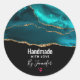 Handmade with Love Modern Teal Agate & Gold Ribbon Classic Round Sticker