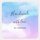 Handmade with love stickers with a soft and lovely background image. Pastel blues and pink clouds with a magical rainbow.