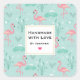 Handmade with Love Pastel Pink Flamingos Pattern Square Sticker