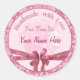 Elegant and classy light pinkish red envelope seal stickers with a satin bow, "Handmade with Love" text and decorative damask frame.