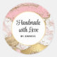 Handmade with Love Rose Gold Pink Marble Design Classic Round Sticker