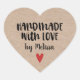 A personalized rustic "handmade with love" heart shaped sticker on a kraft coloured background. Make it yours by adding your own name. A pretty finishing touch for all of your handmade gifts. Designed for you by Blackberry Boulevard.