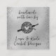 These modern yet classic 2.5 x 2.5 silver foil and glitter square cards with your company name in a beautiful script font, a black ball of yarn with a heart centre, and crochet hook on the front and your contact information and washing instructions with a crochet hook on the back would be perfect for adding into packages at craft fairs or when shipping out online orders to customers. Super easy to make your own.