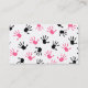 Un carte de visite comportant un arrière - plan des handprints roses et noirs au-dessus du blanc sur l'avant et le dos. Personnalisez avec votre information sur l'avant. Articles assortis Look for à l'école rose.