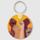 Hands with fist raised up over yellow sun keychain