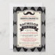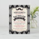 A handsome bachelor party invitation featuring an argyle background, a trendy moustache and the words "PLEASE JOIN US FOR A GENTLEMEN'S NIGHT ON THE TOWN BACHELOR PARTY IN HONOR OF" stylishly typeset. Easily personalize with the event details.