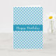 Customizable birthday card with handsome blue gingham pattern. ©Janet Palaggi