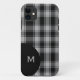 Handsome iPhone Case done in the black and white Macphee clan tartan plaid. A black half circle, on the bottom left side of the case has a single letter monogram ready to personalize, for yourself or as a great gift idea. Stylish way to protect your electronic device. Choose from glossy or matte finish.