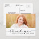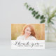 Trendy Handwritten Black Script Photo Graduation Thank You Postcard. Design by Elke Clarke © Visit our shop www.zazzle.com/monogramgallery* for more colours and styles. Add your own photo and text. A simple chic black typography overlay on a white background with the words "Thank You". Replace sample photo with your own.