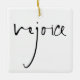 Handwriting Script Rejoice Christmas Greeting Black White. Rejoice is on both sides in a stylish handwriting style Changes to colours of text and background on both sides can be made if you wish via the customise further option.