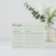 Collect meaningful recipes for the bride-to-be with this elegant bridal shower recipe card. Designed in soft sage green with a modern handwritten-style font, it gives guests plenty of space to write their favorite dish. Perfect for creating a heartfelt recipe collection, this card pairs beautifully with classic, minimalist, or floral bridal shower themes.