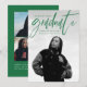 Modern graduation announcement card featuring your graduate's favorite photo on the front with "Graduate" in a green handwritten script. Personalize the front of the announcement by adding the graduate's name, school name, and graduation year. The trendy graduation announcement reverses to display an additional 3 photos with space for text such as future plans, graduation details, party details, etc. The 4 photo graduation announcement is perfect for both high school and college graduates.