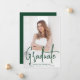 Modern graduation announcement featuring your vertical photo on the front with "Graduate" displayed in a handwritten green script overlay. Personalize the front of the photo graduation announcement with the graduate's name, school name, and graduation year. The simple graduation announcement reverses to display an additional photo with space provided to include the graduate's plans, graduation details, etc. The 2 photo graduation announcement is perfect for both high school and college graduations!