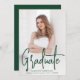 Modern graduation party invitation featuring your vertical photo on the front with "Graduate" displayed in a handwritten green script overlay. Personalize the front of the photo graduation party invite with the graduate's name, school name, and graduation year. The simple graduation party invitation reverses to display your party details in white lettering with a solid green background. The photo graduation party invite is perfect for both high school and college graduates!
