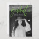 Modern graduation announcement card featuring your graduate's favourite photo on the front with "Graduate" in a lime green handwritten script. Personalize the front of the announcement by adding the graduate's name, school name, and graduation year. The trendy graduation announcement reverses to display an additional 3 photos with space for text such as future plans, graduation details, party details, etc. The 4 photo graduation announcement is perfect for both high school and college graduates.