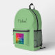 Custom Elegant Modern Cute Trendy Simple Template Upload Image Photo Picture Or Business Logo Add Handwritten Script Name Or Text Sage Green Solid Colour Accessories / Bags & Wallets / Backpack.