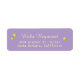 Your home address personalized in a easy way... pale purple background colour with two lines of text aligned by centre, and your name written in a stylish script font style with the image of small golden hearts.