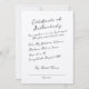 A minimalist, handwritten style script Certificate of Authenticity template that can be customized with details about your artwork and artist name.