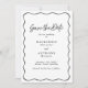 Set the tone for your celebration with this chic black-and-white Save the Date card, designed for couples who love minimalist style with a playful twist. A hand-drawn wavy frame surrounds the handwritten “Save the Date” script, adding warmth and personality to the clean layout.